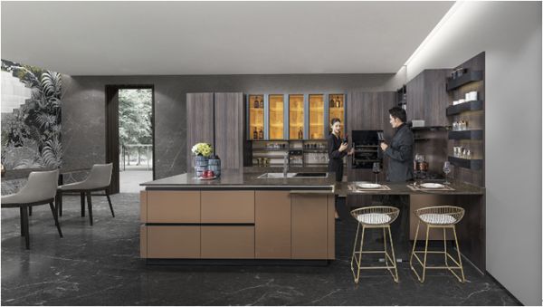 柏厨“凯撒”橱柜整体造型的设计灵感来源于拉德芳斯凯旋门,优雅大气、充满法式浪漫与精致格调。金丝黑胡桃的材质,低调舒适,是岁月沉淀的涵养溢余表面。