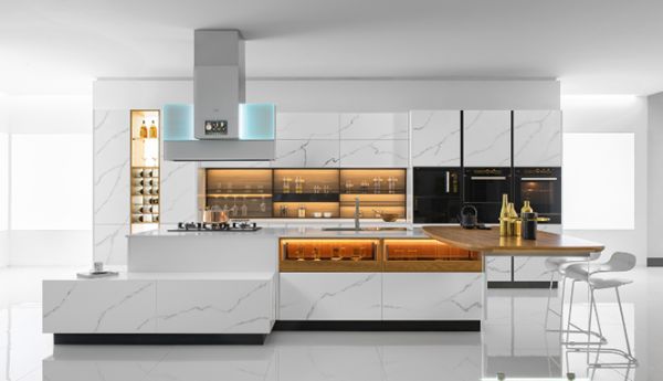 “此时无声胜有声。”柏厨“礼白”——礼遇一种简单的留白人生。纯手工大理石纹烤漆工艺,每一笔线条都呈现手作的匠心,独一无二、不可复制。门板采用45°切角工艺,以45°角切割,通过两个方向进行倒角组装,工艺讲究,细节精致,完美诠释儒匠精神——45°做人,90°做事。