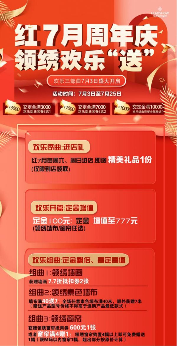 周年庆直播已经完美收官,但感恩回馈活动还在持续进行中,7月3日-7月25日,“红7月 周年庆,领绣欢乐‘送’”海量豪礼送不停,精彩活动不容错过!