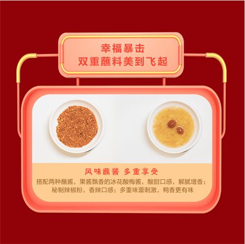 那么,风味北京烤鸭好吃吗?咱们先来看看蘸料。据悉,蘸料有酸甜和香辣两种。喜欢酸甜口感的可以蘸冰花酸梅酱,解腻增香;您要是“无辣不欢”可以试试蘸秘制辣椒粉,配上夏日冷饮,十分解馋。而且,风味北京烤鸭皮薄油少、肉紧骨酥,可以直接切成小段,省去了片鸭皮的步骤,这样的一系列创新让烤鸭也能久吃不腻。