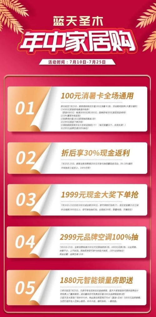 “年中家居购”大手笔投入7月10-25日【蓝天圣木 年中家居购】,商场在财力、物力、渠道资源等方面加大投入,邀请创绎传媒潘大强执行团队进行强强联合,全力备战年中大促。