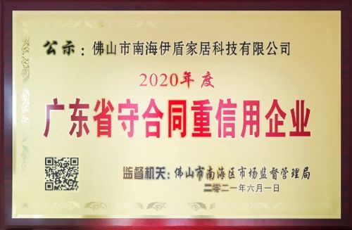 人无信则不立,业无信则不兴。为推动社会信用体系建设,倡导诚实守信的社会风尚,鼓励企业加强合同和信用管理,广东省工商行政管理局于近日向社会公示2020年度广东省“守合同重信用”企业名单。伊盾门窗凭借企业自身完善的合同管理机制及良好的合同履约状况等企业诚信信用体系,荣获“广东省守合同重信用企业”荣誉称号。