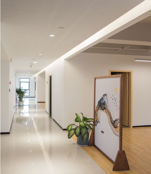 走廊过道:办公室走廊区域照度要与办公区域照度合理过渡,照度不宜过高。切忌使用光面反射器,控制眩光。