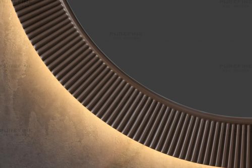 实木镜框表面做立体条纹,柜面则有细线,光影在条纹、细线的起伏中产生明暗变化的动态效果。