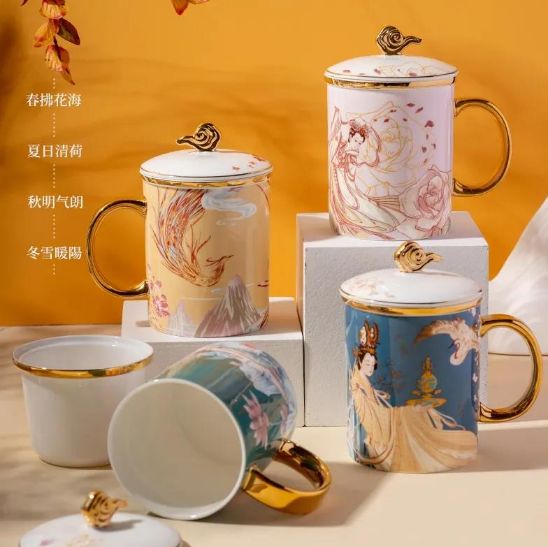 松发瓷器联手永乐宫壁画,让中国古代壁画艺术走进生活:以现代国潮配色,打造“斓苑茶会”,品玉露琼浆;举办一场琼楼佳宴,品人间美味……用瓷器定格壁画艺术之美。联名款瓷器发布了餐具,茶具及马克杯类,覆盖日常生活使用场景,瓷器上的天宫仙境,让人不禁驻足品鉴赏玩。