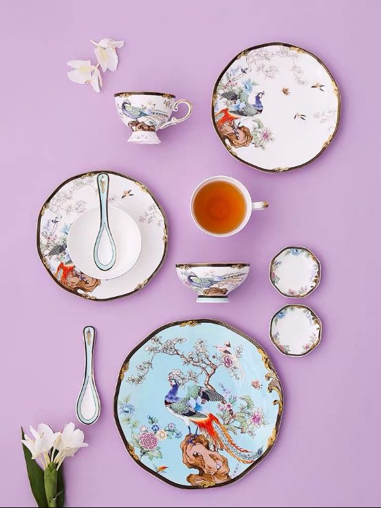 INGRI取之百鸟之王-凤凰为主要创作元素,运用当代美学设计,描述出百鸟朝凤一派富有绚丽多彩,和谐吉祥、生机勃勃的景象。亦可表达人们对太平盛世的无限祈福对美好生活的共同愿望!45%高骨瓷,质感细腻轻薄透亮,进口真金描边更显尊贵。