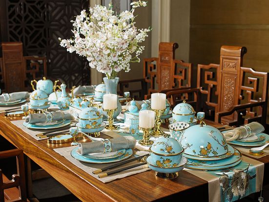 夫人瓷·西湖蓝是2016年G20峰会国宴用瓷,由屡次承揽国宴用瓷大任的国瓷永丰源倾力打造、国匠名师黄春茂老师匠心设计。夫人瓷·西湖蓝以一湖淡蓝底色配合一株绚丽牡丹,达到古老幽远与清灵生机并存,可谓黄老师经典之作,整体器型细腻、温柔,气质端庄婉约,完美诠释东方夫人的典雅韵味。