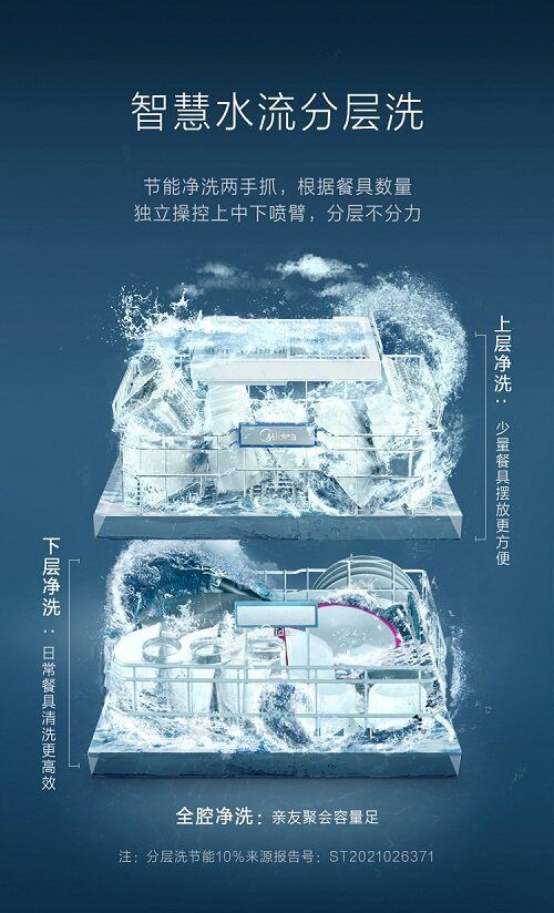 大部分普通的洗碗机,没有办法做到针对少量碗筷的清洗,十分浪费水资源和电能。美的中式灭菌洗碗机MH900在这一点上做的很到位,智慧水流分层洗,可以根据餐具数量,在实现高效净洗的同时,也能保证节能。独立超控上中下喷壁,依据需要清洗的餐具数量,选择不同分层,有针对性的进行净洗程序,才更加高效、便捷。