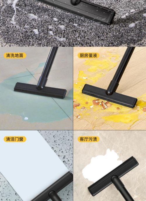 接下来可以用湿吸的刮水刷来清洁一下厨卫台面、瓷砖墙面和玻璃门窗,搭配低泡清洁液,升级刮水刷快速清除液体脏污,内置刮水皮条更细,敛水能力更强,在清洗的同时吸掉污水,清洁力度更高。