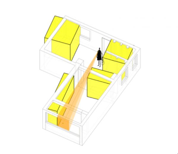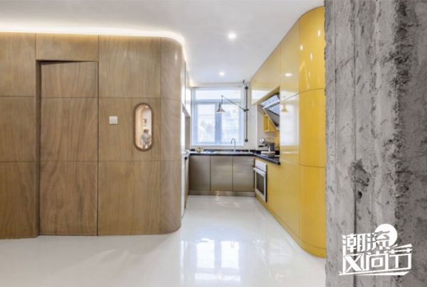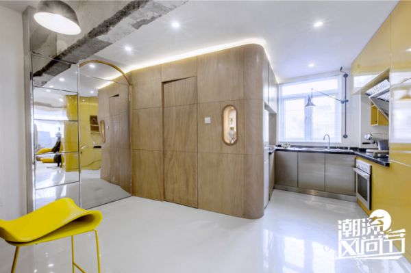 公寓从一个由一间间房子组成的常规形态变成一个由盒子外连续空间组成的流动空间形态。 黄色的厨房柜体成为整个流动空间的中心。 这样的改变让公寓完全消除了原本的压抑感,扩大了空间感受。