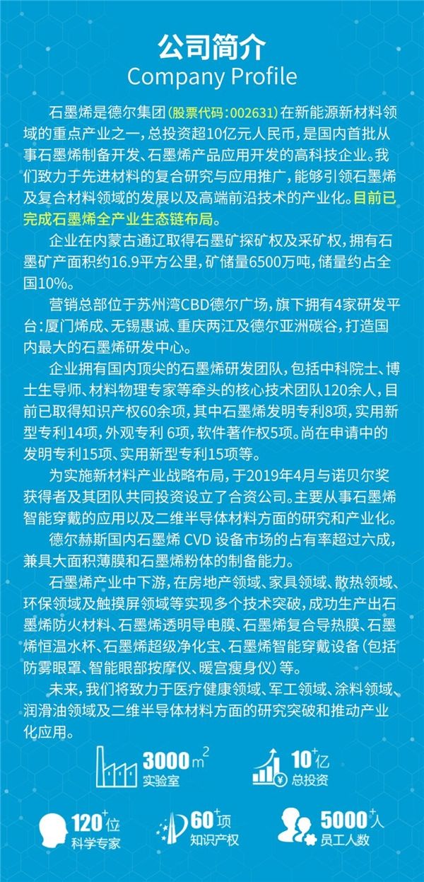智能水杯有广阔的市场前景,德尔赫斯石墨烯恒温杯极具发展潜力。德尔赫斯是一家石墨烯产业生态链企业,是上市公司德尔未来(股票代码:002631)全资子公司。企业在内蒙古通辽有石墨矿,矿储量占全国约10%,是国内首批从事石墨烯制备开发、石墨烯产品应用开发的高科技企业。企业拥有国内顶尖的石墨烯研发团队,包括中科院士、博士生导师、材料物理专家等牵头的核心技术团队20余人,拥有3000㎡+实验室。国内石墨烯 CVD 设备市场的占有率超过六成,兼具大面积薄膜和石墨烯粉体的制备能力,石墨烯产业中下游实现多个技术突破,成功生产出石墨烯防火材料、石墨烯透明导电膜、石墨烯复合导热膜、石墨烯超级净化宝、石墨烯智能穿戴设备(包括防雾眼罩、智能眼部按摩仪、暖宫瘦身仪)及石墨烯恒温杯等。