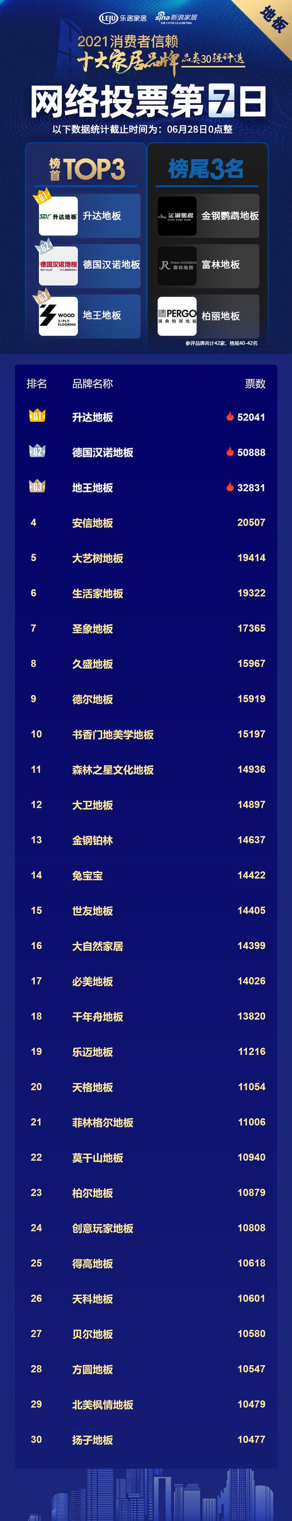 截至6月28日0时,网络票选第七日战况出炉,众多消费者踊跃参与投票,并将投票转发至好友、朋友圈为信赖的品牌助力。