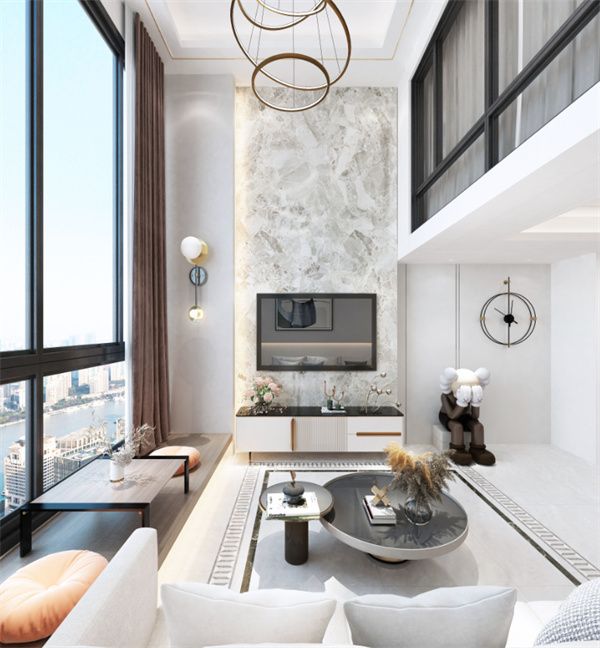 将活力四射的岩板背景墙投注到沉静内敛的高级灰空间,可以最大程度地点燃空间中的动感因子,使家居空间焕发迷人的性感活力。同时,800X2600mm的规格,适合国内住宅户型,上墙一片到顶,少拼接、少砖缝,弘美大气。