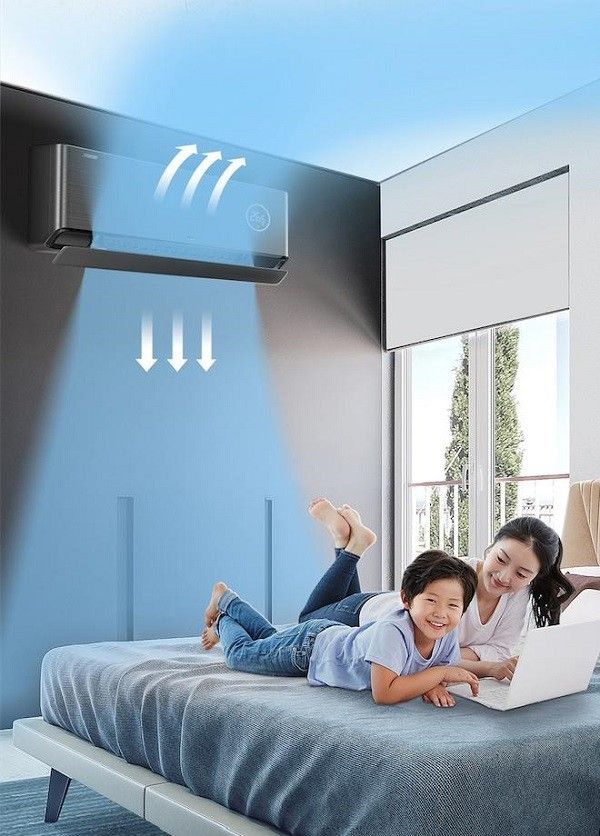 TCL卧室新风空调搭载显性化智慧健康中枢小蓝翼,集多项智能功能于一身,提供新鲜、干净的空气,就像一个健康卫士,呵护家人睡眠健康。真正做到升起小蓝翼,深睡新风里。同时升降式的设计,让你不用担心吹出来的风会直吹到天花板上,造成天花板凝露、发霉,当新风功能关闭时,它也会自动降下来,处于全封闭,防止进灰和污染。
