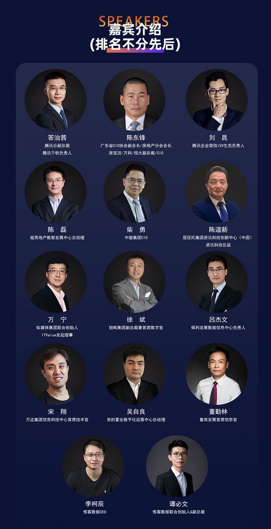 据悉,大会也将邀请多位重磅嘉宾到场分享,其中包括:腾讯云副总裁兼腾讯千帆负责人答治茜、腾讯企业微信ISV生态负责人刘昆,广东省CIO协会副会长兼房地产分会会长、原宝洁/万科/恒大副总裁/CIO陈东锋,保利发展数据信息中心负责人吕杰文、旭辉集团副总裁兼首席数字官徐斌、美的置业数字化运营中心总经理吴自良、万达集团信息科技中心首席技术官宋翔、越秀地产数智发展中心总经理陈磊、中骏集团CIO柴勇、鲁商发展首席信息官董勤林、屈臣氏集团资讯科技创新中心(中国)资讯科技总监陈道新,以及钛媒体集团联合创始人兼ITValue发起理事万宁。