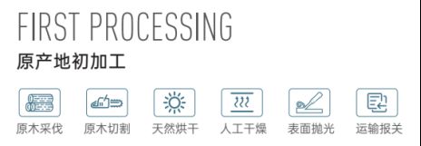 原木采伐-原木切割-天然烘干-人工干燥-表面抛光-运输报关