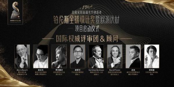 铂伦斯全球设计奖的“顶级设计师评审天团”个个大有来头:Mario Boselli是米兰时装周主办方意大利全国时尚协会荣誉主席、意中经济文化交流协会主席,是意大利的国宝级设计大师,被誉为“时尚泰斗”;黑川雅之是日本建筑和工业造型设计界的代表人物,是业界公认的日本建筑与工业设计教父,被誉为“日本设计圈的达芬奇”;梁志天是国际著名建筑、室内及产品设计师,是第一位当选IFI主席的华人设计师,设计圈内几乎无人不知、无人不晓;梁景华是国际著名设计师、香港室内设计师协会副会长,是顶级诸多顶级豪宅的御用设计师,被评为“首届深圳市工程勘察设计功勋大师”;卡尔·约翰·伯蒂尔松是原瑞典NCS色彩设计学院院长,色彩界教父级人物;大卫·毕加索是西班牙著名建筑师,全球可持续发展建筑设计专家;孟也是国内顶级设计大师,致力于为中国精英阶层定制独有的高端住宅空间,也是诸多明星的御用设计师;邵唯晏是无数国际设计大奖的获得者,被称为“鬼才设计师”、“亚洲设计新势力”。