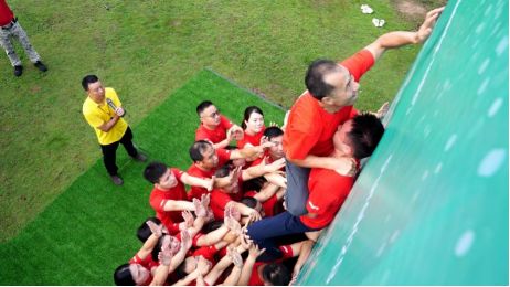 “毕业墙”的意义在于磨砺团队的协作精神,达到最终目标,只有突破大家的思想障碍,通力协作,形成强大合力,才能翻越团队面前隐形的障碍。