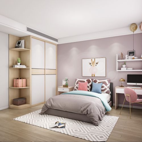 衣柜做成一柜到顶,可以提高柜体的整体性,顶部也可避免落灰,还能高效利用空间,视觉效果更加敞亮和美观。