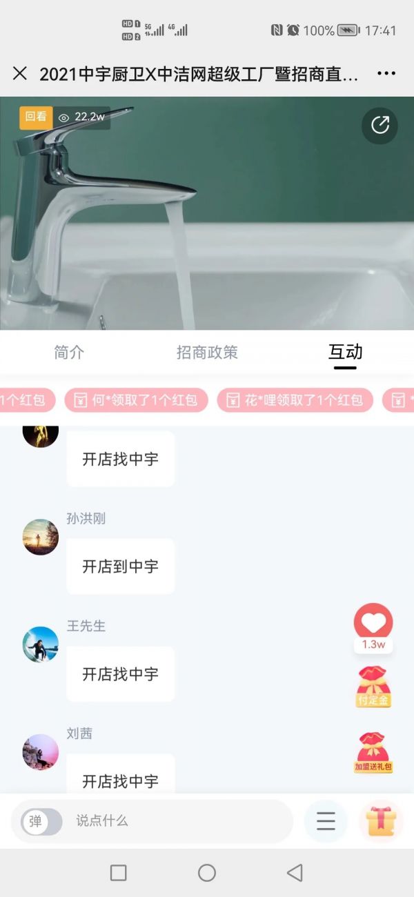 中宇本次直播招商,吸引了一大批优秀经销商加盟,首先这得益于中宇产品的质量以及大家对中宇品牌认可。其次在40多年的历程中,中宇依旧不忘初心,坚持“以人为本、匠心品质、团结协作、真实诚信”的信念。同时在这个国潮崛起的时代,中宇专注于时尚厨卫的创造及研发,为中国产品迈入国际市场做出重要的贡献。