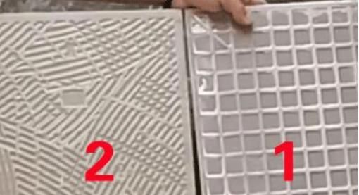 相信很多粉丝和廖先生有同样的疑问。咱们以上面的图为示例,从肉眼上看不太容易判断,1或者2,哪块砖背是滚涂过背胶的。