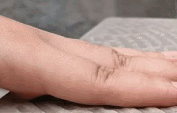没有滚涂背胶的砖背,摸起来会有点粗糙感;而涂刷过背胶这边,会稍微有点粘手。从上面动图,你看出来,哪一块砖背是涂刷过背胶吗?