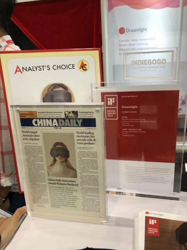 旗下智能睡眠系列产品Dreamlight智能睡眠眼罩,通过智能”声、光、电“组合营造,将”正念引导法“创新性的打造给用户,使每位使用者均获得更优质的睡眠体验。该系列产品不仅获得德国红点设计奖,更得到《China Daily》等全球十大媒体关注和报道。
