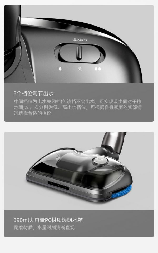 不仅如此,小狗T12 Pro Rinse旋转擦地刷还配备了390ml大容量水箱,一次性满足中大户型清洁需求,减少重复加水的次数,而且3档出水调节能让用户根据污渍顽固情况自主控制出水量,保持清洁布在清洁时处于适宜的湿润状态。