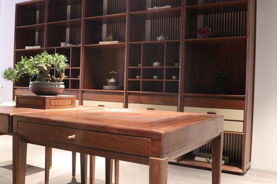 书房——兼具普适功能性和别具一格的个人特色。“赫斯特”的书房整体采用开放式书柜,整板直拼的工艺增强了书柜的稳定性;或宽或窄的实木装饰框,具有现代板式家居的素雅清新、简而不凡的特点,但是却没有板式家居硬直线条所带来的压抑感和华而不实。或拿或放,给你别具一格的一方世界,构筑涵养内心的理想国。书香与茶香,成全了更好的灵与体。
