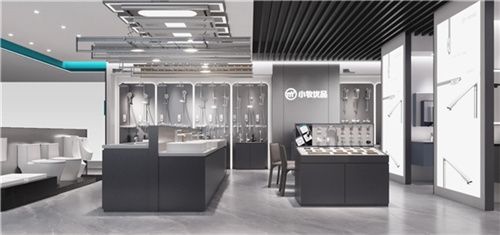 小牧优品2.0s店型产品陈列按照品类划分,将大数据分析与用户习惯相结合。从入门处吸睛的陶瓷马桶与智能马桶区域到五金系列产品区域、中心的洽谈区、浴室柜区域以及后方的淋浴房区域等,每个区域相对独立,空间动线上采用回字型,0死角,兼顾每个成品的浏览和展示效果。
