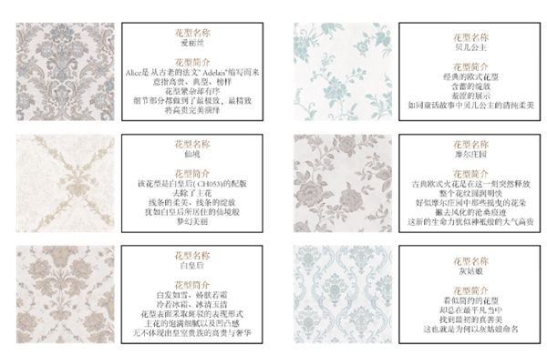 《浮雕绣》系列结合了浮雕工艺和仿绣效果,独创了另一种浮雕工艺,使得花型更为饱满、真实、细腻精致,增添了ABC、AB等搭配,柔和的色系,赋予了产品不同的寓意色彩。