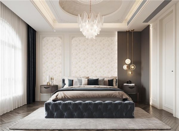 高贵适意的休憩之所,是简欧与现代碰撞出的火花,用极简的风格搭配点到为止的精美,勾勒出卧室的温柔。