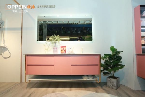 如果说全卫定制3.0主题论坛的举行是欧派卫浴从行业方向进行的一次定调,那么此次建博会上的新品展示则是基于此的一个实践展示——欧派卫浴“袭人”系列登台首秀。据了解,新品系列是以传统文化回归的国潮风为灵感,整体设计充分运用中国元素,将传统与现代完美融合。造型上采用殷红的传统色彩,运用圆弧形设计元素、玲珑红烤漆门板和防污防刮的劳伦金白岩板台面,生动重现了美人梳妆的唯美场景;功能上独立没状态与功能镜柜的搭配可以实现一物多用,专设美妆区提供3倍移动放大镜,分类收纳抽屉、侧边柜、美容冰箱等,构建出具有强大收纳特性的灵动功能空间。