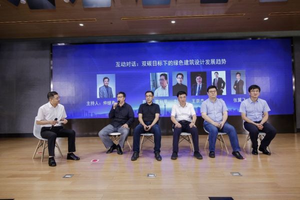 在互动对话环节,主持人邀请了中国建筑设计研究院有限公司副总建筑师仲继寿,华东建筑设计研究总院总建筑师黄秋平,中国建筑设计研究院有限公司绿色建筑设计研究院院长、总建筑师刘恒,山东建筑大学原党委书记、教授王崇杰,龙焱能源科技(杭州)有限公司董事长吴奔,保定嘉盛光电科技有限公司总经理张翼飞上台,共同探讨绿色建筑的发展趋势以及光伏将扮演什么样的角色。