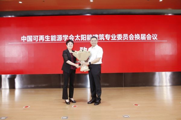 论坛同期还举行了中国可再生能源学会太阳能建筑专业委员会的换届会议,专委会秘书长张磊做专委会总结演讲。张磊介绍,太阳能建筑专业委员会是在2004年成立,始终遵循一个宗旨,就是在可持续发展的框架下,满足建筑对清洁能源需求为目标,为太阳能建筑应用构建学术和技术交流平台。太阳能建筑专业委员会的会员们共同创造了这样一个技术支撑平台,而专委会组织建立的太阳能建筑国家标准也发挥着重要指导作用,并一直致力于和企业共同引导创新新产品。同时,太阳能建筑专委会一直通过设计手段和工程实践,向相关行业传播低碳节能环保理念,目前在36个城市、56所建筑类院校进行了62次太阳能建筑与一体化的科普宣传活动。我们相信并有决心,让太阳能建筑专业委员会在未来的双碳目标之下可以发挥更大的作用。张磊代表中国可再生能源学会太阳能建筑专业委员会向即将换届的专委会主任委员仲继寿先生献花并表示衷心的感谢。