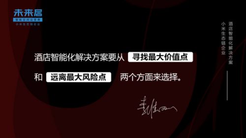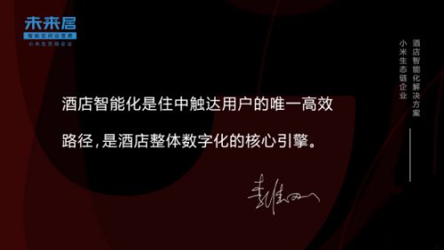 一直以来,未来居深入挖掘酒店、公寓、地产等行业需求,结合小米AIoT平台海量智能设备,为行业提供包括软硬件定制、智能设计、调试部署、运营管理等一站式的智能服务,帮助行业落地智能语音控制、机器人联动、高效数据运营等全场景的智能体验。