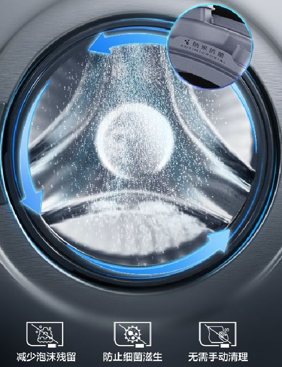 外筒平底设计+内筒全封、喷淋自清洁+抗菌门封、筒自洁+筒干燥“等多个配置功能,能够最大程度地实现抑菌抗菌,全方位保持洗衣机的洁净卫生,真正从源头上杜绝了衣物清洁不干净、衣物二次感染等困扰。