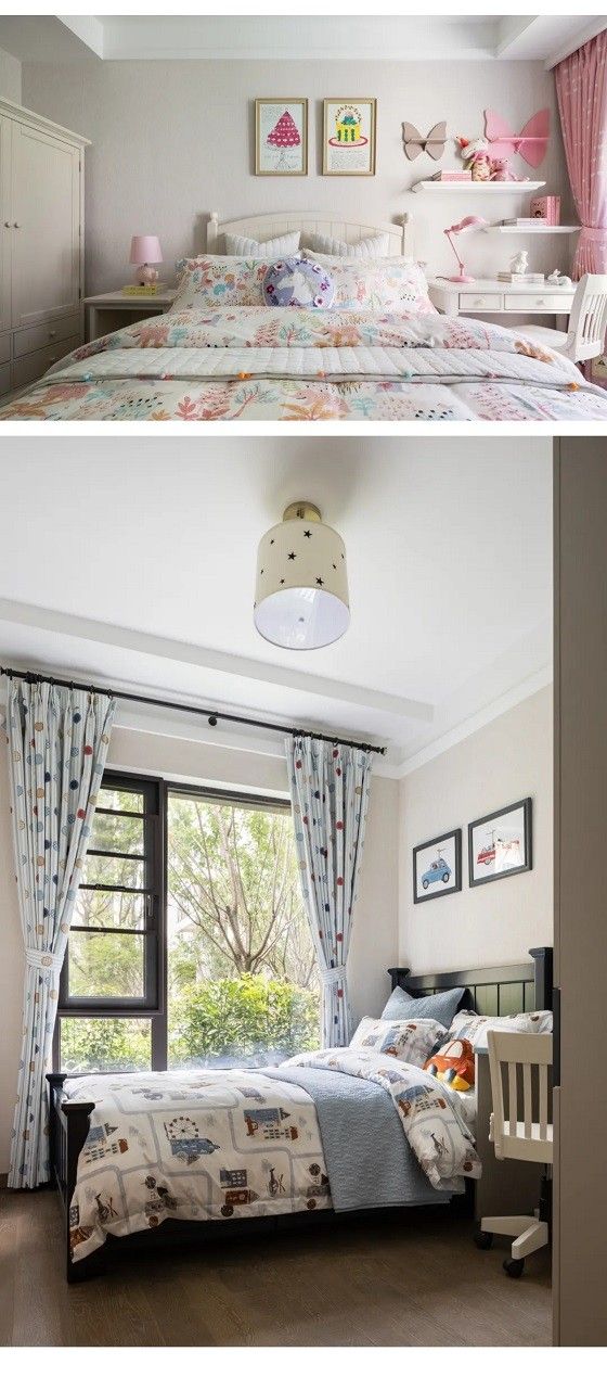 业主家中有两个可爱的孩子,所以这套户型设计了女孩房和男孩房各一个。