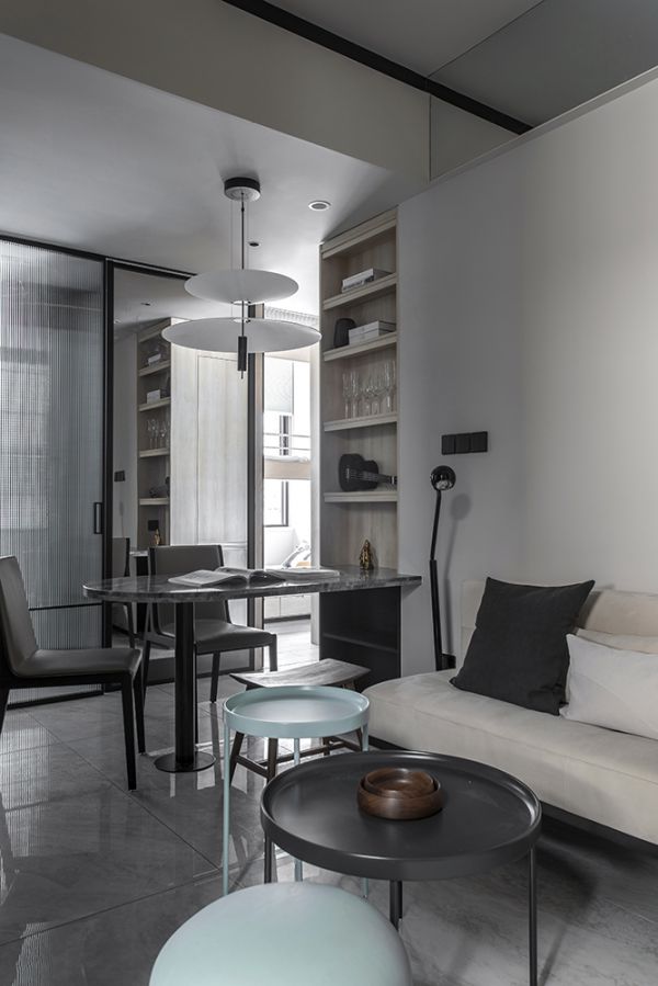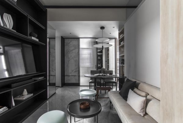 设计师在委托人的介绍里了解到,夫妻二人平日会邀请双方的父母轮流来家中照看孩子,但由于广州天气潮湿,室内空气流通性差,容易使得室内严重发霉,对老人和孩子的身体都有很大影响。其次,房屋的空间布局不合理,生活空间正对入门口,隐私性极差,卫生间的位置紧靠批发市场,一旦打开窗户,灰尘会铺满地面,影响到室内空气质量。并且,收纳体系的缺失让家里堆满了杂物,不仅不美观,还对日常生活带来诸多不便。
