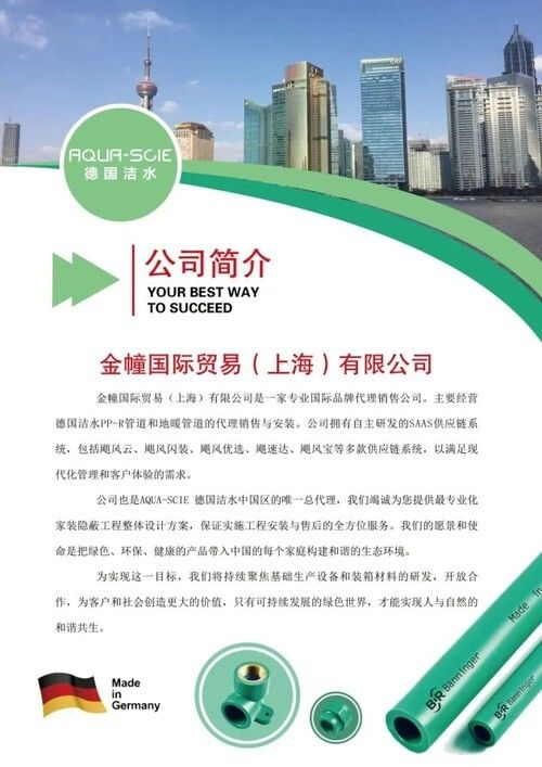 近年来,随着PPR管备受消费者青睐,越来越多的水管巨头涌入市场,形成PPR管行业的大爆发,行业洗牌加剧。这对最早将PPR管道系统引入中国市场的德国洁水(AQUA-SCIE)也造成不小压力,许多代理商面临巨大挑战。