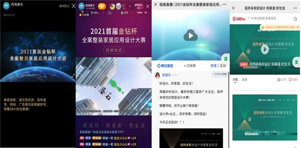 7月16日,“好设计、好家居、好生活”2021首届金钻杯全案整装家居应用设计大赛线上启动仪式圆满举办!抖音,新浪家居,搜狐家居,腾讯家居,设计叨叨叨联手直播近50万人在线观看。大赛发起人、全国工商联家具装饰业商会副秘书长、西海基石教育总裁谢鑫详细解读了“金钻杯”的特别之处,包括如何保障为业主赢得最大收益,为设计师、家装公司、建材企业整体赋能,实现共同获益?以及大赛的组织、流程、参与方式等详细情况。同时,全国家装主流领军品牌企业家,业之峰装饰集团董事长兼CEO张钧、土巴兔创始人兼CEO王国彬、鸿扬家装董事长陈忠平等,也在线发布了对大赛的祝福并诚邀全国广大业主、设计师参赛。
