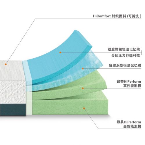 HiComfort外套面料采用Sanitized天然抑菌技术,添加薄荷因子,不仅拥有100%抗菌功效,更能持久保持清新。可脱卸外套设计,轻松解决对床垫清洁的诉求,更符合母婴使用级别,支持多次清洗,不褪色。更有101天免费体验服务等。