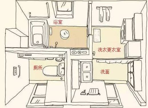 3、四式分离:浴室、厕位、洗漱、洗衣家务