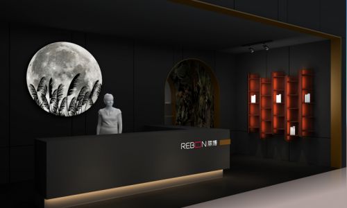 展厅入口接待台后,是一轮高挂的明月,它是关于美的意向,以独有的纯粹为古今中外的艺术家们带来无限灵感,深邃而神秘。