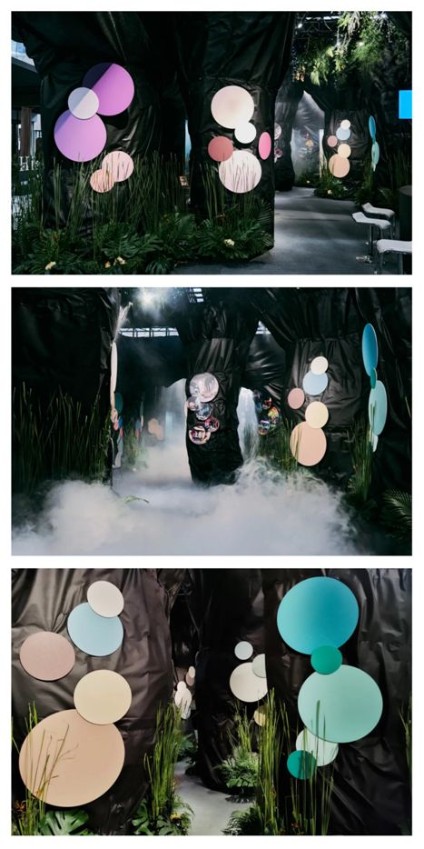 近几年随着沉浸式体验的再度兴起,群众对展会的观感和体验感需求增加。美国邓恩开放式的展柜,以洞穴为场景,昏暗的无色空间为基调,以邓恩的各种艺术化样板为核心,结合野生绿植和人造雾,犹如幻彩的仙境,真正做到了沉浸式体验的精髓—“丰富的感官体验,丰富的认知体验的活动才能创造最令人投入的心流”。