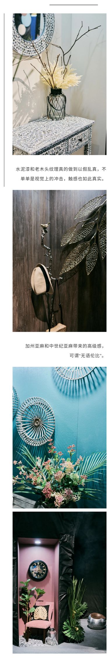 美国邓恩涂料虽然主营涂料,却打破了传统涂料的思维,不仅在色彩美学和健康环保上有很深的造诣,同时邓恩中国研发出了各式各样的符合现代审美的艺术涂料效果。这次也为了提升体验效果,搭建的样板间内展示了各种惊艳的纹理图案,让人忍不住惊叹:连涂料也能做出这样的视觉盛宴?!