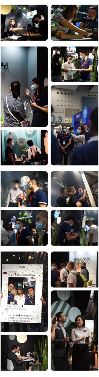放眼整个D区,美国邓恩涂料独树一帜的风格,成为了展区中“最靓的仔”,非常吸引眼球。早上10点开始,被展厅的前卫设计吸引、进入展厅咨询的人越来越多。祖国大江南北的访客齐聚这里,共同欣赏这一次的视觉盛宴。