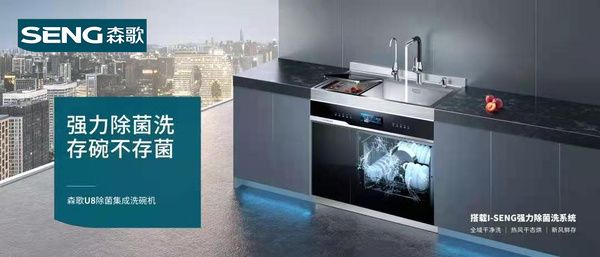 相较于普通的洗碗机,集成洗碗机完美解决了厨房空间小的焦虑。森歌u8除菌集成洗碗机集洗碗机、消毒柜、存碗柜、手工水槽、果蔬机、净水器、万向龙头、沥水帘、皂液器为一体,9项集成,大容量配置,一站式解决厨房净洗需求。