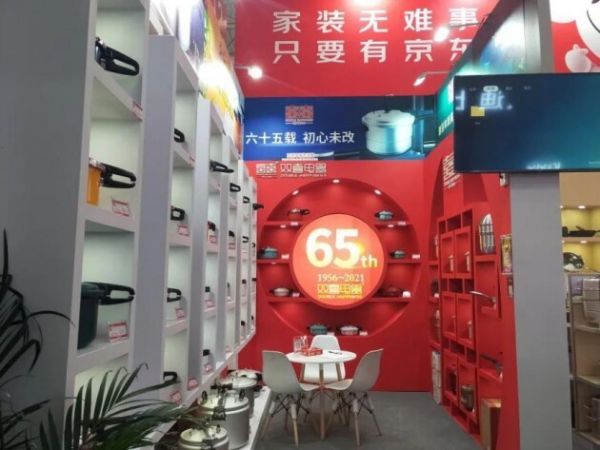 双喜电器展馆坐落于京东居家品牌馆A2-S2-3a,从展位的布置风格上,就有着大胆的突破与创新,简约现代的设计格调,更好的诠释了现代人的厨房生活美学。