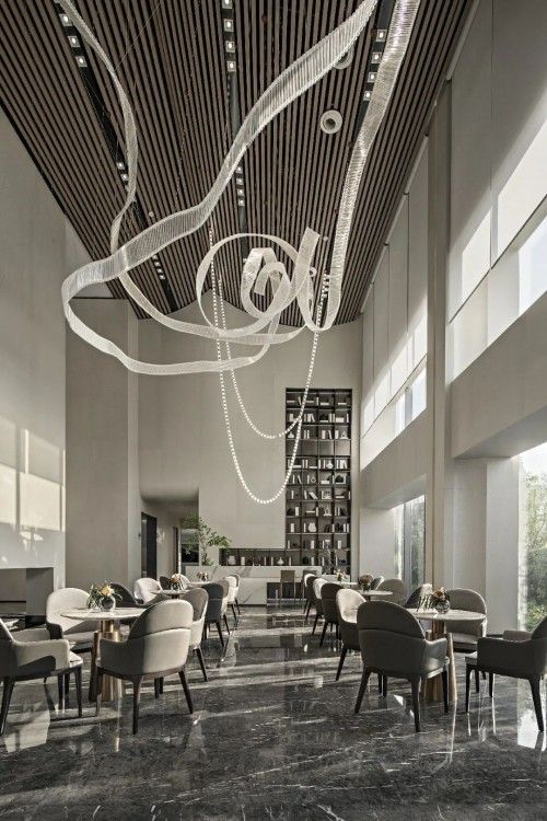 光是首屈一指的画师,它叩开深锁之门,温柔从容地拂过方圆的格局,它反映着千年前的情思,又回应着现世的感动。 基于“人景交互”的理解,洽谈区以大面积落地窗和开放式的布局,打破空间之间的界限,拉近景观与室内的距离,让自然的气韵于内外自由穿梭。